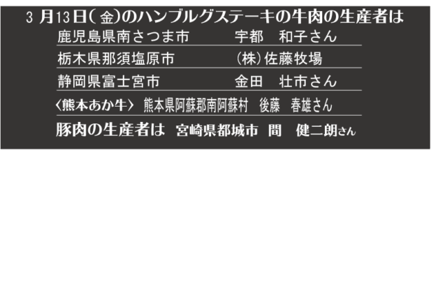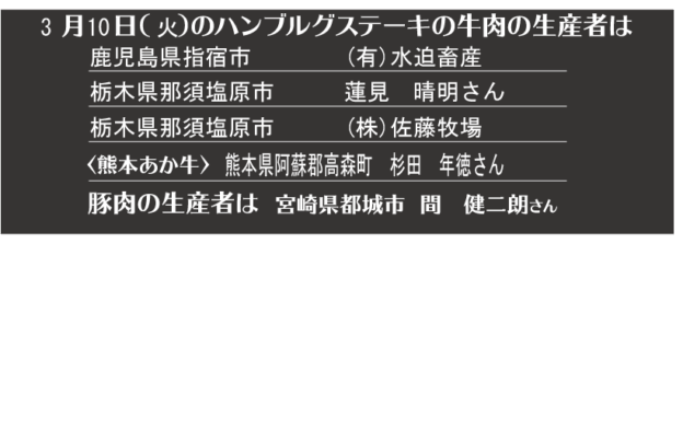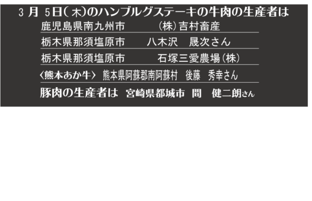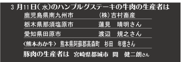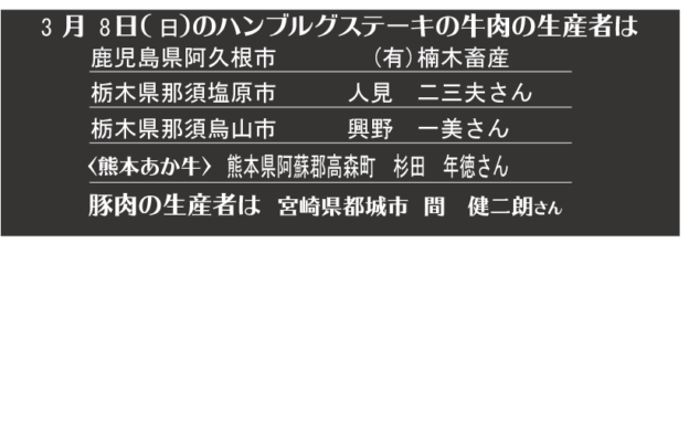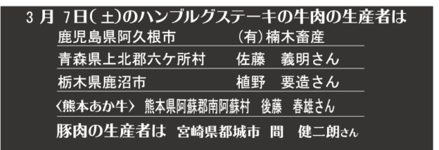 - つばめグリル、キッチン本日の牛肉生産者